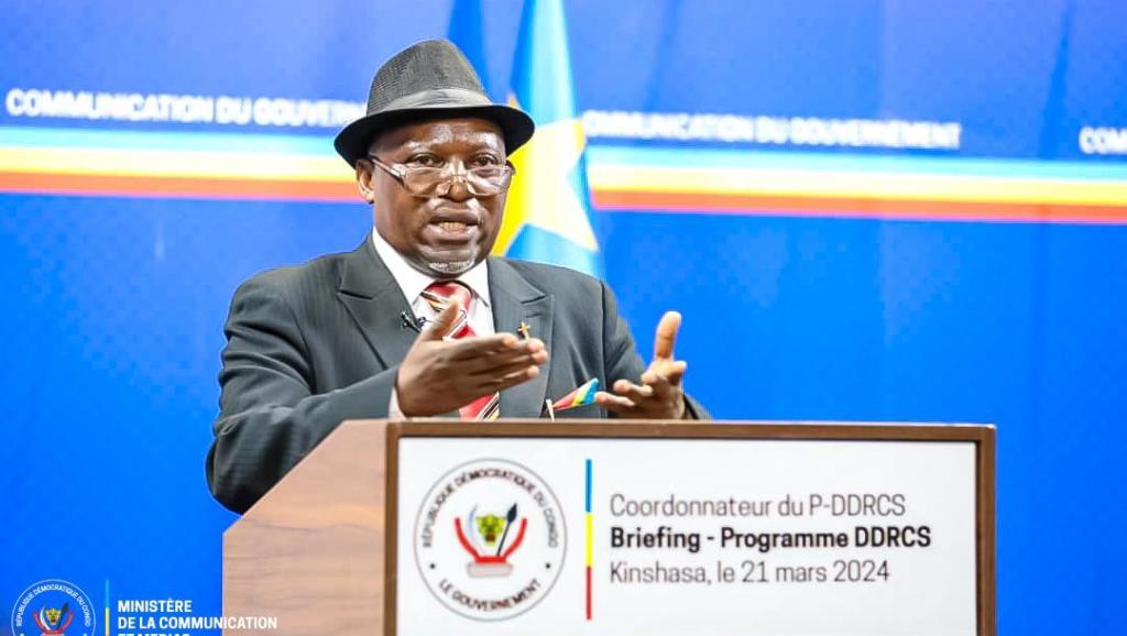 Le briefing de jeudi 21 mars, co-animés par le Coordonnateur National du Programme de Désarmement, Démobilisation, Relèvement Communautaire et Stabilisation (P-DDRCS), Abbé Jean-Bosco BAHALA OKW’IBALE LUSHEKE et le Ministre de la Communication et Médias, Porte-parole du Gouvernement, Patrick MUYAYA KATEMBWE, a porté autour du thème central : "Programme de Désarmement, Démobilisation, Relèvement Communautaire et Stabilisation (P-DDRCS) : état d’avancement, défis et perspectives pour la paix et la stabilité"