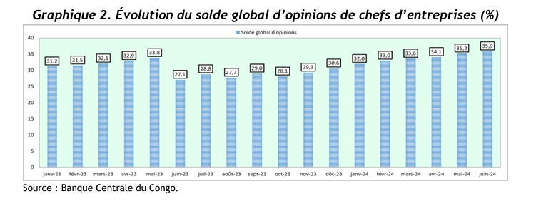 Les résultats de l’enquête d’opinions, en juin 2024, renseignent une consolidation de la confiance des chefs d’entreprises quant aux perspectives économiques de l’économie nationale, selon le baromètre de la Banque centrale du Congo.