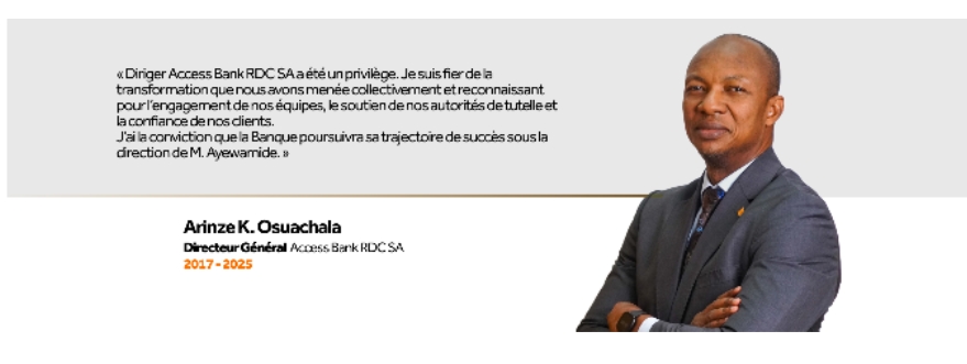 « Diriger Access Bank RDC SA a été un privilège. Je suis fier de la transformation que nous avons accomplie ensemble et reconnaissant pour l’engagement de nos équipes, le soutien de nos régulateurs et la confiance de nos clients. Je suis convaincu que la Banque continuera à prospérer sous la direction de M. Ayewamide. »